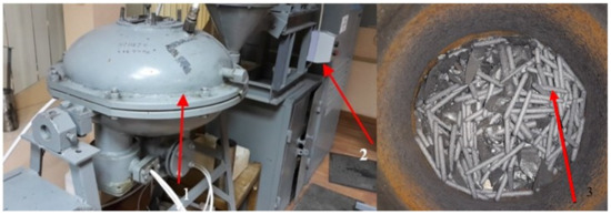 The apparatus for mechanical activation of MCNTs: 1—the working body; 2—the control unit; 3—grinding bodies (metal rods).