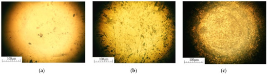 Figure 9c shows the distribution of the temperature field for an elastomer modified with MCNTs with graphite after the second—the main—stage of mechanical activation. The supply voltage of the elastomer is 100 V. This stage is characterized by a more uniform distribution of the temperature field and an increase in the temperature mode at the peak up to 57.1 °C. At this stage of mechanical activation, structural changes in MCNTs occur, and large agglomerates are almost completely broken (Figure 9c). Figure 10 shows spreading MCNTs in elastomer.
