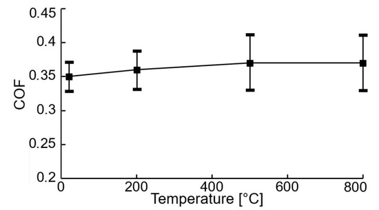 In contrast, after the applied annealing process at a temperature of 200 °C, the COF value increased slightly to 0.36 ± 0.03 (Figure 11).