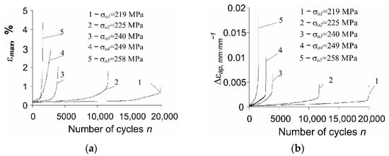 versus the number of a cycle for two levels of cyclic stress amplitude: the lowest (