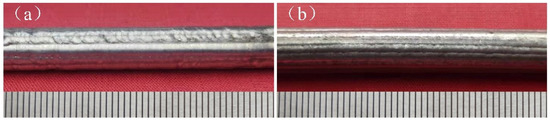 The cladding appearance images: (a) the underwater cladding layer; (b) the in-air cladding layer.