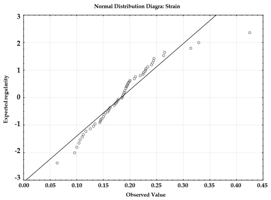 Distribution of the normality of strains in the analyzed samples.