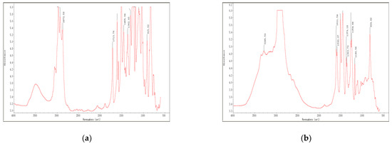 The IR spectrum of components A and B in three typical epoxy resins, namely Dow epoxy resin, TY-RA epoxy resin and YC-YN epoxy resin, are shown in Figure 1, Figure 2 and Figure 3, respectively. It can be observed from FT-IR images obtained through IR spectrum analysis that, epoxy resins exhibit the characteristic peaks of epoxy groups [34]. The main absorption peak is located at 912 cm−1 and the vibration absorption peak of the benzene ring skeleton in the bisphenol-A structure is found at 1607 cm−1. Some epoxy resins are plasticized, toughened and modified by mixing with asphalt. The broad band at 3285 cm−1 shows the vibration absorption peak of hydroxyl groups or the double-frequency absorption induced by stretching vibration of N-H and carbonyl. There are many impurities represented by peaks between 900 cm−1 and 1300 cm−1 in the fingerprint region.