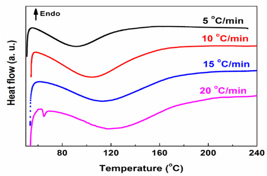 DSC curves of high-performance cold-mix resin at different heating rates.