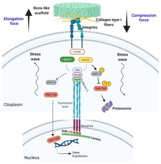 - Elosegui-Artola, A.; Andreu, I.; Beedle, A.E.M.; Lezamiz, A.; Uroz, M.; Kosmalska, A.J.; Oria, R.; Kechagia, J.Z.; Rico-Lastres, P.; Le Roux, A.-L.; et al. Force Triggers YAP Nuclear Entry by Regulating Transport across Nuclear Pores. Cell 2017, 171, 1397–1410.e14. [Google Scholar] [CrossRef]
