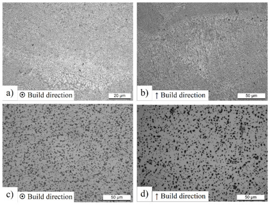 - Hadadzadeh, A.; Amirkhiz, B.; Li, J.; Mohammadi, M. Columnar to equiaxed transition during direct metal laser sintering of AlSi10Mg alloy: Effect of building direction. Add. Man. 2018, 23, 121–131. [Google Scholar] [CrossRef]