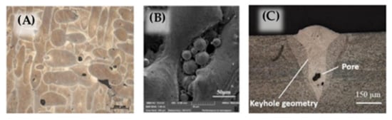 In the solid-state AM process (SSAM), the material does not melt. Instead, the layers are joined in the solid state under accelerated diffusion, forged consolidation through high friction, pressure, and impact. Since there is no melting in SSAM, the complex fluid dynamics associated with fusion-based AM techniques are absent. In turn, this is beneficial in minimizing the chances of porosity and physical defect formation associated with fusion-based AM in the printed components. Some of the SSAM techniques (Table 2) include cold spraying [15] and friction stir welding [16]. Cold spraying is considered the most common SSAM technique. In it, supersonic velocities are imparted to metal particles by placing them in high-pressure, heated air, an inert gas stream that is expanded via a convergent–divergent nozzle. High pressure and temperature result in high gas velocities, yielding high particle acceleration within the gas stream. The particles entrapped in the gas stream are bombarded towards a surface embedded on impact, forming a strong bond. Subsequent spray passes cause increments in structure thickness, and the adhesion of the metal powder to the substrate and the cohesion of the deposited material is achieved in solid state [17].