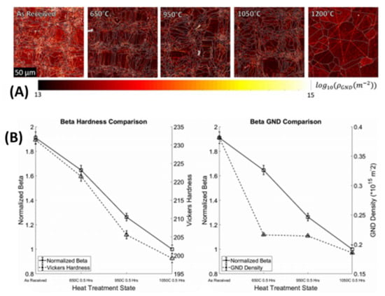 Furthermore, governed by the thermodynamic free energy content principles, changes in phases, sometimes massively, are often found in AM-printed samples. Researchers worldwide have been using X-ray-based techniques, especially XRD, to identify these changes in phase content within AM-printed metals compared to their conventionally manufactured counterparts [55,56]. Ettefagh et al. [57] performed a comparative study on the phase content of additively printed and conventionally manufactured Ti6Al4V and reported the sole presence of martensite in SLM-processed Ti6Al4V, which was distinctly different and absent in the counterparts processed conventionally (Figure 5a). Apart from these, combined electron- and X-ray-based techniques, especially EBSD and EDX, have gained massive interest as these characterization techniques help to elucidate the crystal structure and orientation. Moreover, elemental content within AM-printed parts varies from the conventionally manufactured process. It has important information with which to understand and differentiate the distinct and peculiar mechanical and material characteristics exhibited by metals processed by additive and subtractive manufacturing [58,59]. Lu et al. [66] observed and reported massive transformation in EBM-printed Ti6Al4V, where EBSD color inverse pole figures (IPFs) were shown to demonstrate the grain boundary-crossing phenomenon in the samples (Figure 5b,c).