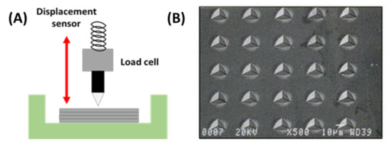 - Fischer-Cripps, A.C.; Nicholson, D.W. Nanoindentation. Mechanical engineering series. Appl. Mech. 2004, 57, B12. [Google Scholar] [CrossRef]