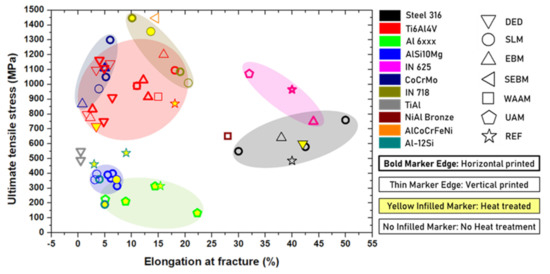 - Tolosa, I.; Garciandía, F.; Zubiri, F.; Zapirain, F.; Esnaola, A. Study of mechanical properties of AISI 316 stainless steel processed by “selective laser melting”, following different manufacturing strategies. Int. J. Adv. Manuf. Technol. 2010, 51, 639–647. [Google Scholar] [CrossRef]