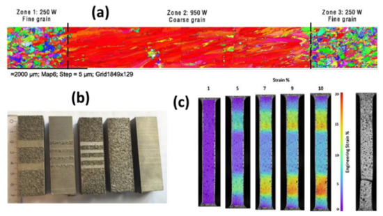 - Popovich, V.A.; Borisov, E.V.; Popovich, A.A.; Sufiiarov, V.S.; Masaylo, D.V.; Alzina, L. Functionally graded Inconel 718 processed by additive manufacturing: Crystallographic texture, anisotropy of microstructure and mechanical properties. Mater. Des. 2017, 114, 441–449. [Google Scholar] [CrossRef]