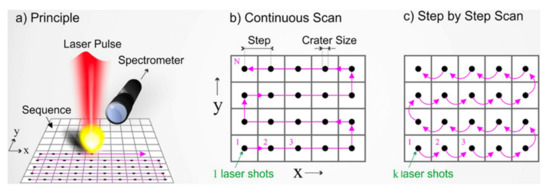 - Jolivet, L.; Leprince, M.; Moncayo, S.; Sorbier, L.; Lienemann, C.-P.; Motto-Ros, V. Review of the recent advances and applications of LIBS-based imaging." Spectrochimica Acta Part B: Atomic Spectroscopy. Spectrochim. Acta Part B At. Spectrosc. 2019, 151, 41–53. [Google Scholar] [CrossRef]