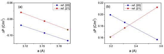 Polarization difference in function of the a lattice constants: (a) ; (b) .