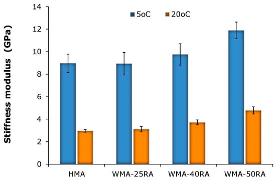 Figure 6 shows the stiffness modulus test results for all mixtures.