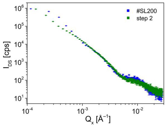 The comparison of log(IDS) vs. log(Qx) distributions for #SL200 and step 2 samples.
