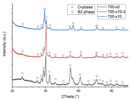 Figure 7a) due to the presence of the B2 phase. The decomposition of the O-phase into B2 and O phases induced by multiple-laser exposure was also confirmed by the XRD results, as can be seen in