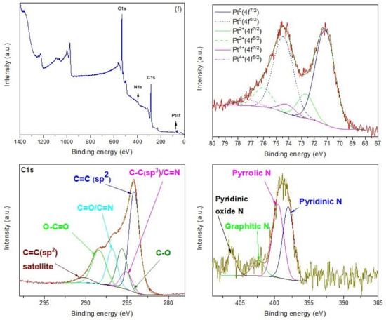 The following are available online at https://www.mdpi.com/article/10.3390/ma14174952/s1, Table S1: C1s peak position and content (at %) for every carbon element determined from XPS measurements, Table S2: N1s peak position and content (at %) for every nitrogen element determined from XPS measurements, Table S3: Pt4f peak position and content (at %) for every platinum element determined from XPS measurements.