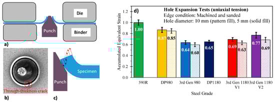 - Levy, B.S.; Van Tyne, C.J. Effect of a Strain-Hardening Rate at Uniform Elongation on Sheared Edge Stretching. J. Mater. Eng. Perform. 2012, 21, 2147–2154. [Google Scholar] [CrossRef]