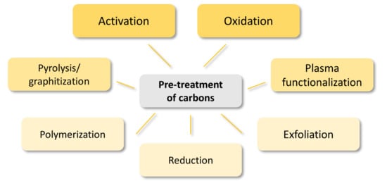 Graphical summary of typical pre-treatment strategies of carbon materials.