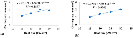 The relationship between average charring rate of spruce wood and the heat flux density (in time intervals from 0 to 600 s; from 0 to 900 s; and from 0 to 1920 s) is shown in Figure 2.