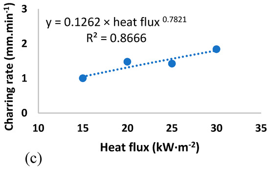 Average charring rate in time interval: (a) from 0 to 600 s; (b) from 0 to 900 s; (c) from 0 to 1920 s.