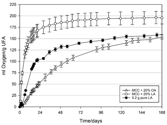 3.3. Oxygen Absorption Capacity of MCC Loaded with UFAs