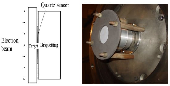 For thermal shock measurement on the REB, an X-cut shunt protection ring quartz piezoelectric crystal sensor and measuring circuit (Figure 3) is used. The thermal shock sensor is installed in the same position as the impulse sensor, both installed in the REB drift tube. The sensor’s outer diameter is Φ 15 mm, the diameter of the inner electrode surface is Φ 7.5 mm and the thickness is 3 mm, the external load resistance of the sensor is 51 Ω, and the characteristic impedance of the external coaxial cable is 50 Ω. Figure 4 shows the schematic diagram and installation drawing of thermal shock sensor on REB. The target is a typical missile shell material of homogeneous Al-alloy.