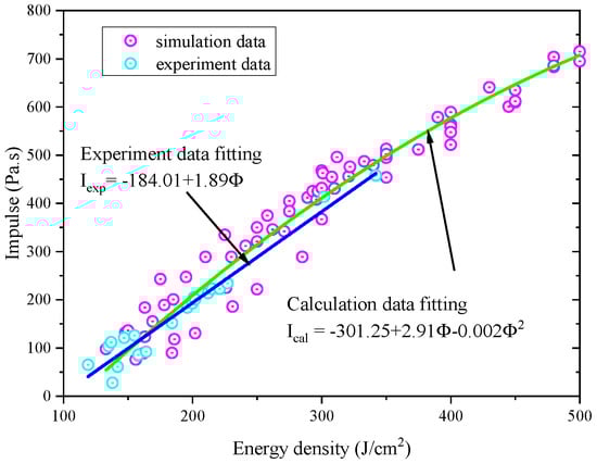 To analyze the equivalence, the blow-off impulse results are calculated and compared with the experimental data, as shown in Figure 13. Meanwhile, the data are fitted and the formulas are given.