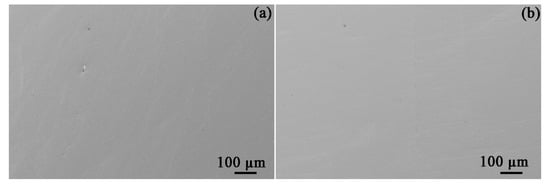 Ex situ SEM characterization of identical areas and inclusions before and after exposure to bitumen avoids providing misleading results. The morphologies of the four types of inclusions prior to and after exposure to bitumen at 60 °C are given in Figure 3. After an exposure of 30 days, no obvious corrosion could be found to occur at the inclusions. Furthermore, the API-X100 pipeline steel matrix (Figure 4) also did not show any signs of corrosion: no trace of uniform or pitting corrosion was detected.