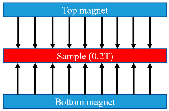 The cells were exposed to the magnetic field using the static magnetic field (SMF) stimulation system designed in Wroclaw University of Science and Technology. This system is appropriate to produce a uniform SMF through action of two parallel magnets with opposite polarity. Plates with samples were placed in the central core, as shown in Figure 1. In this place, the MF strength was equaled 0.3T. The daily exposure of cells on the MF was 15 min.