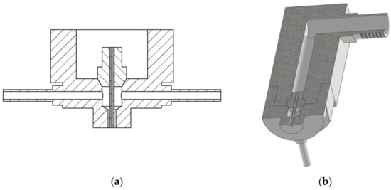 The second type of experiment was measurement below the water surface. Both the head with a nozzle for water and coaxial air flow and the examined material sample were submerged. Two stand-off distances, 60 mm and 120 mm, were applied. These experiments were realized aiming to study the possibility of jet impact intensification, in case of submerged material cutting, by means of coaxial air flow. In order to improve the jet flow coherence, a steel needle with an inner diameter of 1 mm was inserted into the original nozzle. The air was delivered through two cylindrical pipes with a diameter of 4 mm placed symmetrically opposite to each other into the central air cavity and then proceeded through an air pipe with a diameter of 4 mm along the outer needle wall (