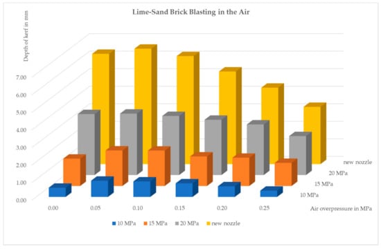 The lime-sand bricks (KM Beta, Hodonín, Czech Republic), with a compressive strength of 30 MPa were used in the experiments, as a model of the material that should be removed from the remediated surfaces in practice. The bricks were blasted transversely with a traverse speed of 100 mm per minute (