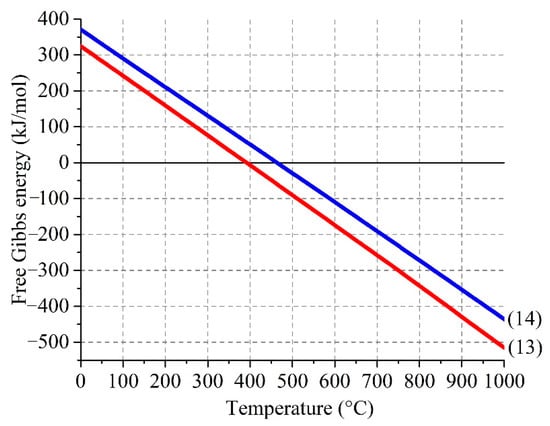 Figure 5 demonstrates the temperature dependence of Gibbs free energy of the reactions (4) and (5).