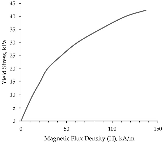 Characterization of MR fluid as yield stress vs Magnetic flux density plot (yield stress curve).