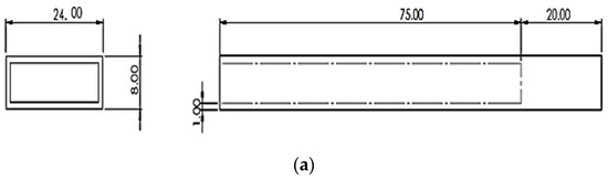 The specimen consists of two materials. Flexible PVC is used as a host material and MR fluid is used as a core material of the cantilever beam. The extrusion process is used to produce a rectangular hollow cross section structure made of polyvinyl chloride. The polyvinyl chloride structure’s annular core portion is 75 mm long, while the clamped part is 20 mm long. After filling MR Fluid into the core using a syringe (Hindustan syringes, India) the end of the annular part is covered with PVC elastomer cap. Figure 3 shows the cantilever structure’s dimensions and the wireframe model.