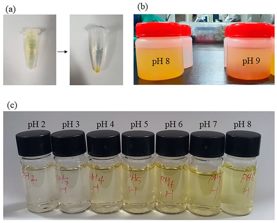 As the pH increases, the H+ content in the solution decreases, and the surface charge and properties of the adsorbent change, so the corresponding Cr(VI) adsorption capacity decreases. The adsorption of metal ions was also checked using optical images (Figure 9a,c). The image (Figure 9c) shows the multi-metal-ion mixture after testing for the selective adsorption of metal ions, which displays a different color due to the difference in chromium adsorption performance under different pH conditions.