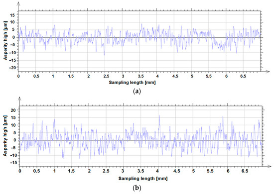 The surface roughness of the tested materials was studied using the Mitutoyo Surftest SJ-500/P profilometer. The surface profile changes were measured with a measuring step of 0.1 μm and a speed of 200 μm s−1, over a length of approx. 10 mm. Recorded parameters according to ISO 4287 [45] were processed and developed using the FORMTRACEPAK computer program.