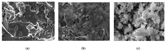 SEM image of the surface of CpTi G4 substrate mechanically polished, sandblasted and sterilized after bioactivity test for (a) 1, (b) 3, and (c) 7 days of immersion in SBF at 36.6 °C (×2000 magn.).