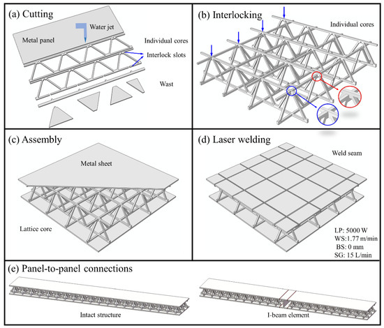 34] investigated the failure mode and hysteretic behavior of the composite beam connection, and a corresponding simulation model was proposed. However, the above researches were conducted by the FEM, and the experimental verification was still absent, with an aim to reveal the deformation mode, bearing capacity, ductility, degradation property, and fatigue life of the joint. The effect of the connected geometric dimensions on the mechanical properties of the panel-to-panel LTPS is ambiguous. In addition, a theoretical model, which is not only more convenient for engineering application but also reflects a deeper understanding of deformation mechanism, is also still required to predict the overall deformation behavior of the panel-to-panel construction.