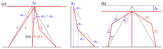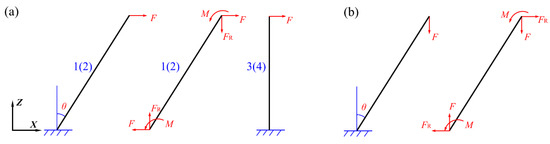 Under shearing force, the rotation angles of the plastic hinge for the truss 1, 3, and 4 are easily calculated by Equations (32) and (33).