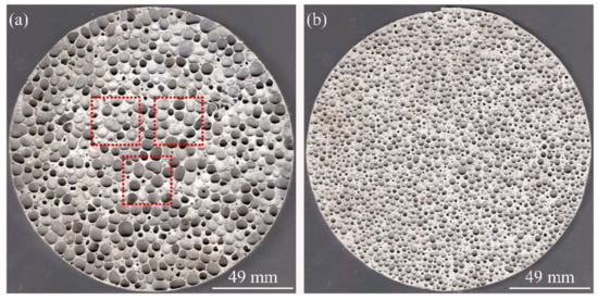 Metal foams are porous materials in which one phase is gaseous and the others are dense metals or alloys. Aluminum foams with a closed cell structure have high specific strength and excellent energy absorption ability and have been receiving increasing attention in various engineering fields such as construction, transportation, and aerospace [1,2,3].