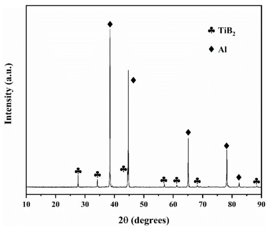 Figure 2 shows the XRD pattern of the Al-10TiB2 composite. The characteristic Al and TiB2 peaks can be observed in the composite.
