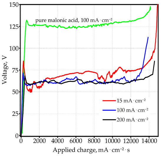 - Golovataya, S.V.; Mozalev, A.M.; Poznyak, A.A. Peculiarity of aluminium anodization in malonic acid solution. In Proceedings of the 2006 16th International Crimean Microwave and Telecommunication Technology, Sevastopol, Ukraine, 11–15 September 2006; Volume 2, pp. 606–607. [Google Scholar] [CrossRef]