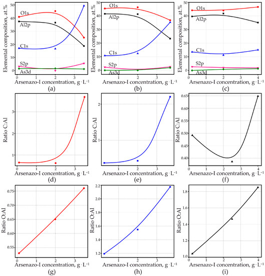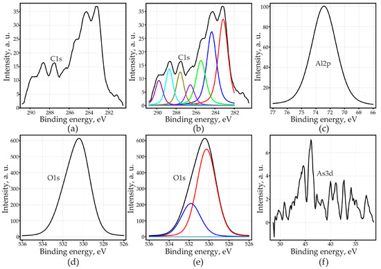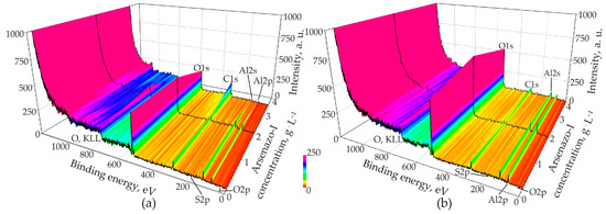 - XPS and XRD measurements indicate that at a low anodizing current density (15 mA·cm−2), the incorporation of arsenic occurs, presumably, in the composition of complex compounds of arsenazo-I with aluminum, and at a high current density due to the formation of an inorganic compound with the formula Na1,5Al2(OH)4,5(AsO4)3·7H2O, and the arsenic for the formation of this compound was formed as a result of the destruction of arsenazo-I molecules at a high anodic current density (200 mA·cm−2).