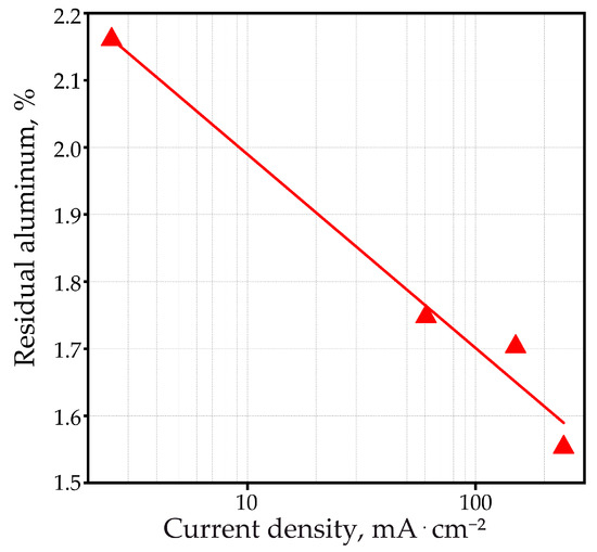 - The data on the current efficiency ηF allowed us to make a conclusion on the amount of residual aluminum in the PAOF. A significant excess in some cases of the current efficiency ηF relative to unity is due to the presence of a large number of islands of non-anodized aluminum.