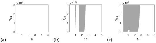 Now , the nonlinear coupler is defined by in Equation (1) (the second and fourth equations). Next, the dimensionless time , the frequency and the coordinates are introduced according to the following expressions: