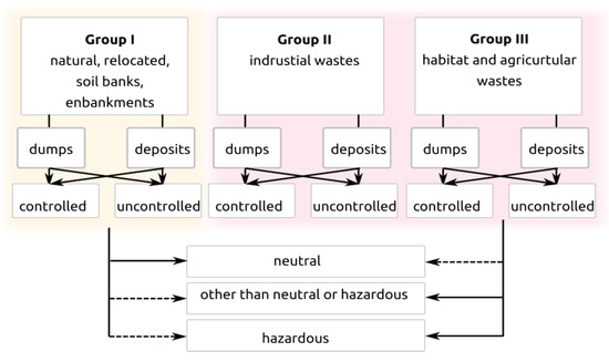 Anthropogenic soils come in various forms, depending on the technology of their storage (dumping) and usage. At present, dumping (external and internal) is used to create landfills [15,16], heaps and earthwork structures [17,18,19] (e.g., road embankments, levees). Anthropogenic soils, as human-occupied layers, have also shaped the surface and subsoil in cities. Geological engineering research on these soils should be carried out in cooperation with archaeologists. Traces of human activity are often the criterion that shows the anthropogenic origin of geological layers. Due to the many possibilities of anthropogenic soil usage, the research aims and scopes are extremely diverse [20,21]. When it comes to engineering constructions, as with natural or native soils, it is crucial to investigate compaction parameters, as well as the choice of equipment and compaction technology [22], but it is also important to take into account the possible geochemical transitions of built-in soils and the degree of their aggressiveness towards concrete and steel constructions.
