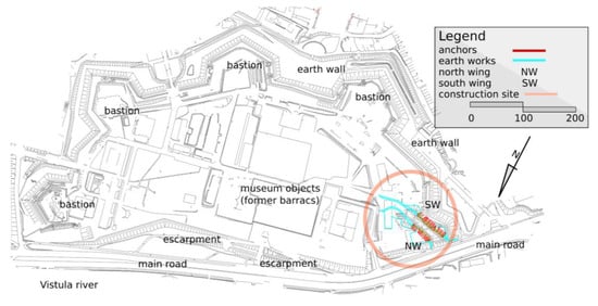 Architects of the WCXA studio are transforming the Citadel into a tourist attraction and a memorial. The new museums that will be located there will change the defensive character of the land development. The walls and ramparts must be open for vehicle and pedestrian passage (Figure 2 and Figure 3). Geotechnical works, as a stage of this project, are shown in Figure 4.