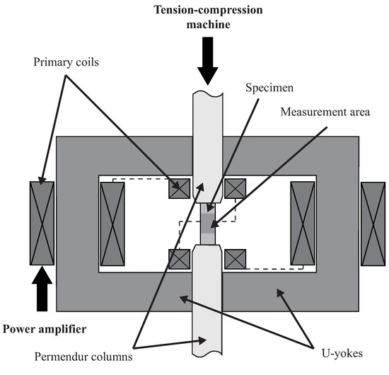 - Galopin, N.; Daniel, L.; Bouillault, F.; Besbes, M. Numerical analysis for the design of a magneto-elastic characterisation device. Prz. Elektrotechniczny 2007, 83, 44–47. [Google Scholar]