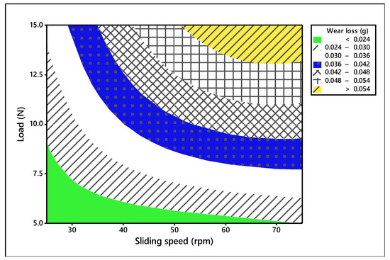 Contour plot for wear loss (Load vs. sliding distance).